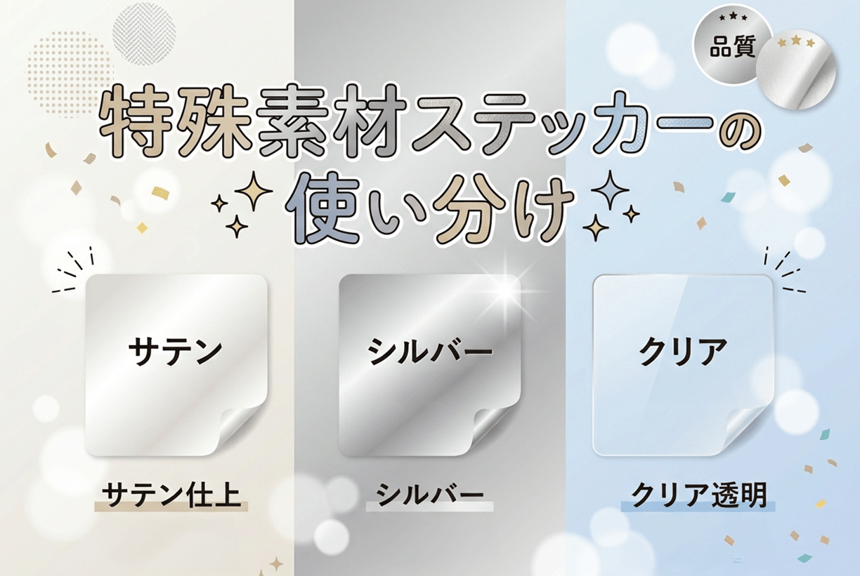 特殊素材ステッカーの使い分け|サテン・シルバー・透明素材とデザインの相性
